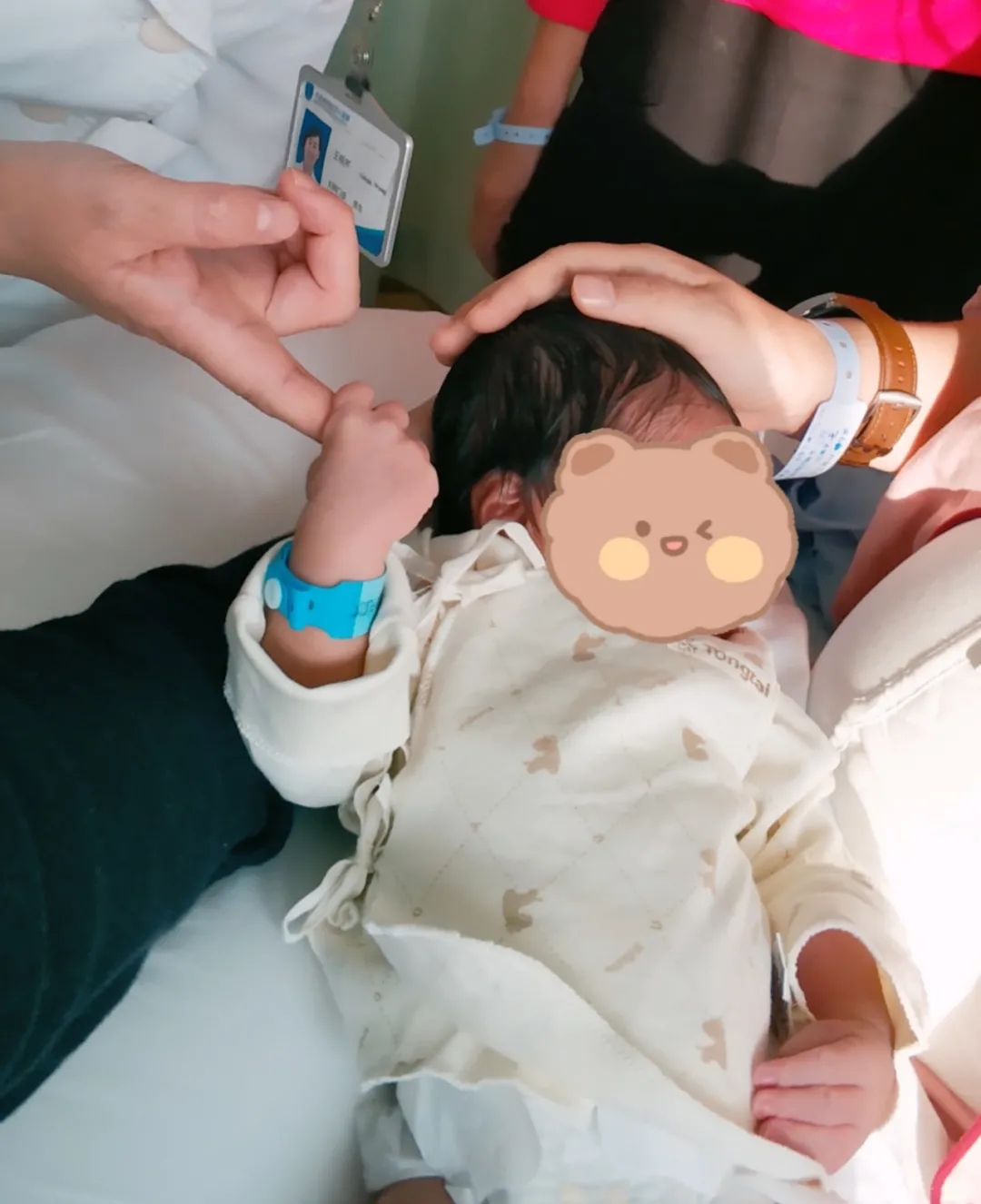 “宝宝紧紧地攥紧了主任的手指不放开